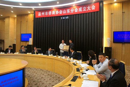 成立大會由溫州市人民政府僑務辦公室副主任、溫州市僑商協會執行會長周海平主持。溫州市僑商協會會長翁巧銀宣讀了《關于成立溫州市僑商協會山東分會的決定》,任命法國華僑華人會常務副主席、濟南康都(和信)置業董事長李建清為會長,濟南市溫州商會會長、山東連城置業有限公司董事長陸建林為秘書長,法國華僑華人會名譽主席林加者為名譽會長。溫州市僑辦主任鮑衛翔為溫州市僑商協會山東分會授牌。李建清會長表示,將以溫州市僑商協會山東分會的成立為契機,團結在魯溫籍僑商,促進在魯溫商合作交流,為山東經濟發展和反哺家鄉做出貢獻。山東省及濟南市僑辦、溫州市僑辦領導分別對分會的成立表示熱烈的祝賀,希望分會不斷發展壯大,帶領在魯溫籍僑商造福社會。