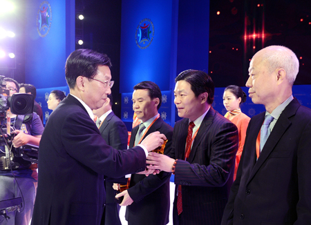 大會現場向獲得功勛浙商獎、杰出浙商獎、創業創新獎、浙商新星獎的73名浙商頒獎。我會章鵬飛會長榮獲“創業創新獎”,山東省浙江商會榮獲“創業創新組織獎”,全國浙江商會中只有上海、湖南和我會三家浙江商會獲此榮譽。主持人現場采訪了上臺領獎的章鵬飛會長,問他浙商應該如何回歸?章鵬飛會長說,浙江省委省政府對我們在外給予了莫大的關心支持,從很多方面讓我們感受到了家鄉的溫暖。浙江是浙商的家,我們在外發展當地經濟,現在家鄉的呼喚,我們山東省浙江商會這兩年已經開始回歸發展,以后將更多地回鄉投資、回歸發展,為家鄉建設貢獻積極力量。