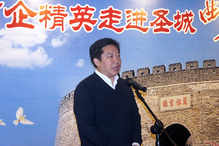 黃道跟常務副會長在致辭中結合自身在曲阜的投資經歷,從曲阜市政府對企業支持很大,曲阜發展很快,政府工作創新很多,交通很便利等四個方面對曲阜市委市政府高效務實的領導班子和投資發展環境給予高度評價。他說,曲阜是全國率先提出“第一書記”“馬上就辦”的市縣。成立了100多個“馬上就辦辦公室”,開通了“馬上就辦一線通”,政府部門的工作狀態是“白加黑”“5+2”,這些對投資商來說是非常振奮的。黃道跟常務副會長以在曲阜投資經歷,邀請企業家到曲阜投資興業。