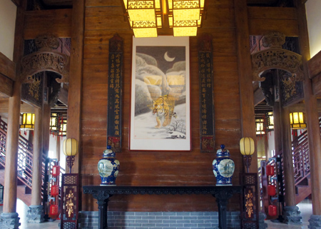 為了更好地突出特色旅游主題、構建北方江南風情。天湖公司斥巨資從古徽州地區搜購保存良好官賈民居、門樓匾額等整體古建及物品,按原貌安裝于天湖景區,讓景區融入徽文化及徽派建筑風格。景區設計力求使自然與人文相結合、傳統與現代相統一、古典與時尚相輝映。園區內亭臺樓閣、小橋流水、珍異花木、假山奇石讓人流連忘返,移步換景,四時如新、暗香流動。