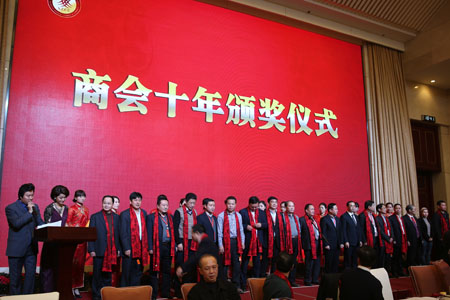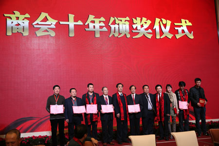 十年發展,是成長,是成熟;十年歷程,是感動,是感恩;十年發展,是耕耘,是收獲;商會十年,是責任,是行動。回顧商會十年,集合了太多人的心血和努力。慶典晚宴還為十年來給予商會支持付出的顧問、會員進行了頒獎。商會感謝為商會發展嘔心瀝血的黃壽康執行會長,他夫人上臺領取了“商會十年?感恩懷念”獎;向商會高級顧問山東省僑務辦公室原主任周挺,山東省人大常委會原常委、發改委原主任倪永康等7位老領導頒發了“商會十年?奉獻”獎;商會常務副會長葉樂明、倪士鎮、金位海、杜利峰、陳躍華、陳桂宏、胡小軍、葉肖東、陶光忠、黃道跟、傅廣偉,副會長陳錫銘、林體樂、蔣加良、黃河、徐綏遠、萬順青、鄭朝國、王哨華、徐超、許增國、韓志妙,常務理事董金祥、鐘麗麗、趙永偉,理事樓天聯、葉杰、陳鍵、邵建東、毛林建等30位浙商榮獲“優秀浙商”獎;商會副會長林體樂、黃河等18人獲得“優秀共產黨員”榮譽稱號。