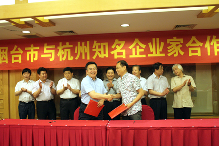 5月22日,煙臺市與杭州知名企業家產業合作懇談會在美麗的西子湖畔召開。煙臺市委常委、常務副市長于愛軍,市政協副主席、發改委主任王式亮帶隊赴杭開展此次產業合作懇談會。