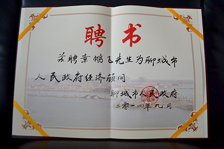 全國知名企業家走進聊城 章鵬飛會長受聘聊城市人民政府經濟顧問