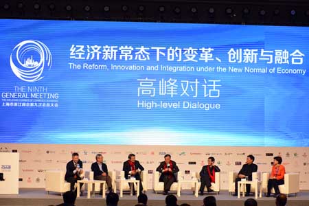 上海復旦大學教授蔣昌建主持嘉賓對話。金融專業人士朱云來,泰康人壽保險股份有限公司董事長陳東升,杉杉控股有限公司董事長鄭永剛,清華大學經濟管理學院院長錢穎一,新光控股集團有限公司董事長周曉光等嘉賓,就“經濟新常態下的變革、創新與融合”闡述了他們的見解。