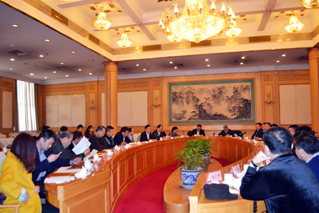 2015年2月11日上午,省工商聯異地商會民營經濟發展環境評議座談會在濟南南郊賓館召開。省政協副主席、省工商聯主席王乃靜出席并講話。省委統戰部副部長、省工商聯黨組書記、省非公有制經濟組織黨工委書記孫孺聲主持會議。省工商聯黨組副書記、副主席、省非公有制經濟組織黨工委副書記曹元,省工商聯黨組成員、秘書長孫占甲,省工商聯黨組成員、紀檢組長,省非公有制經濟組織黨工委副書記張永法出席。省管異地商會的會長、黨組織負責人、秘書長30余人參加。我會常務副會長、黨支部書記胡小軍和秘書長張利生與會。