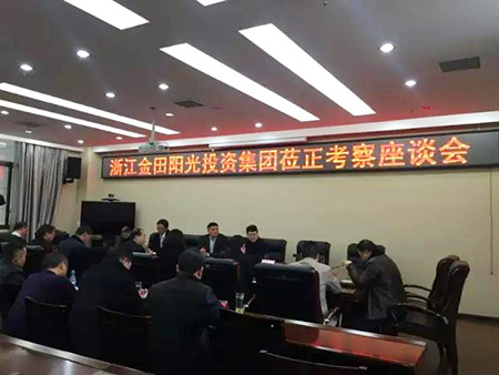 11月30日下午,金位海參加由正安縣人民政府組織的考察座談會。正安縣縣委常委、開發區主任謝勁松;副縣長陳靜、馮宇;國土局、統計局、住建局、投資促進局、經開辦、金融辦、經貿局、交通局、市監局等相關職能部門負責人參加座談,詳細地介紹了正安縣人文地理、城市總體規劃、項目審批流程、土地、招商、融資、稅收、 IPO等相關政策。金位海也向正安縣與會領導重點介紹了金田陽光的發展現狀及未來的發展方向。雙方就各自關注的問題進行了深入的探討交流。