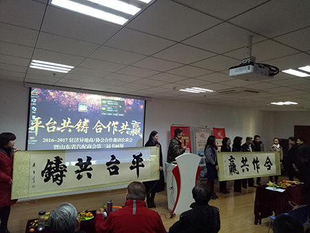 12月16號(hào)下午,由濟(jì)南市工商聯(lián)主辦,山東省民政廳特別邀請(qǐng)參與的駐濟(jì)異地商/協(xié)會(huì)合作邀請(qǐng)洽談會(huì)暨第三屆書畫展在泉利重配城舉辦。我會(huì)理事陶業(yè)琳參加洽談會(huì)暨書畫展。