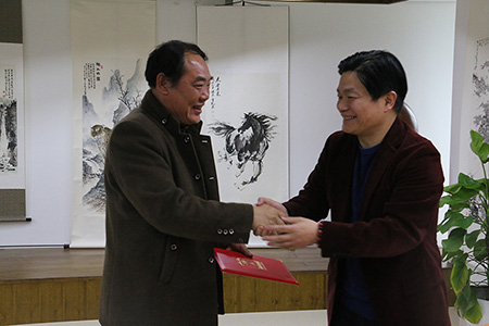 會(huì)議開(kāi)始后,首先由徐一寧書(shū)記代表現(xiàn)代聯(lián)合集團(tuán)宣布現(xiàn)代畫(huà)院人事調(diào)整,聘任洪水發(fā)為現(xiàn)代畫(huà)院特聘顧問(wèn);任命吳志強(qiáng)任浙江現(xiàn)代畫(huà)院副院長(zhǎng)兼運(yùn)營(yíng)總監(jiān),增補(bǔ)其為浙江現(xiàn)代畫(huà)院理事。現(xiàn)代聯(lián)合集團(tuán)董事長(zhǎng)章鵬飛為兩位頒發(fā)聘書(shū)。
