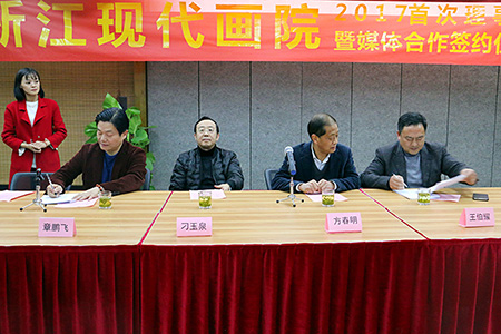 3月16日下午,浙江現(xiàn)代畫(huà)院2017首屆理事會(huì)暨媒體合作簽約儀式在會(huì)長(zhǎng)單位現(xiàn)代國(guó)際大廈8樓現(xiàn)代畫(huà)院舉行,現(xiàn)代聯(lián)合集團(tuán)董事長(zhǎng)、現(xiàn)代畫(huà)院創(chuàng)始人章鵬飛,現(xiàn)代畫(huà)院顧問(wèn)郭池兵出席活動(dòng),現(xiàn)代聯(lián)合集團(tuán)黨委書(shū)記徐一寧主持會(huì)議。