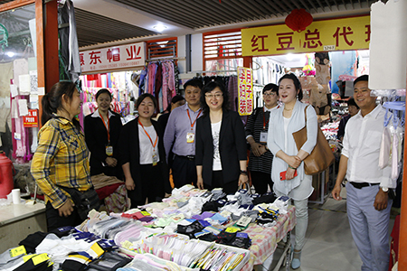 5月5日上午,商會秘書長孫延偉、執行秘書長徐秀梅、常務理事徐庚君,副秘書長劉謐等一行來到商會金位海執行會長的金田陽光濟南義烏市場走訪。濟南公司副總經理姜紹偉、行政人事部部長任文娟、市場管理部副部長黃寧及相關人員熱情接待。