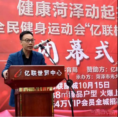 菏澤億聯(lián)世貿(mào)中心副總經(jīng)理陳可兆代表包松安董事長及億聯(lián)世貿(mào)中心全體員工發(fā)言。他指出,體育事業(yè)是社會(huì)主義精神文明建設(shè)的重要內(nèi)容,全民健身運(yùn)動(dòng)是構(gòu)建和諧社會(huì)的重要因素,發(fā)展體育事業(yè),增強(qiáng)全民體質(zhì),功在當(dāng)代,利在千秋。舉辦本次運(yùn)動(dòng)會(huì),是菏澤市體育局加強(qiáng)文化建設(shè)的重要舉措,更是全市開展全民健身運(yùn)動(dòng)的一次總動(dòng)員。億聯(lián)控股集團(tuán)作為中國民營企業(yè)500強(qiáng),以高度的社會(huì)責(zé)任感與擔(dān)當(dāng),服務(wù)于體育公益事業(yè)責(zé)無旁貸。