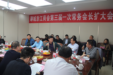 下午,會長葉希東在山東極策房地產開發有限公司會議室主持召開了聊城浙江商會第三屆一次常務會長擴大會議,會上討論了輪值制度,修訂了會議制度及工作制度,參會會長們建言獻策積極提出寶貴意見及建議,氣氛熱烈活躍。特邀嘉賓聊城市公安局原政委付強同志給與會浙商企業家們上了一堂很有現實意義的《換個角度看發展》學習課程,從守法經營、安全生產、環境保護等幾個方面號召大家講誠信、守規矩經商,參會浙商均表示受益匪淺,感觸頗深。