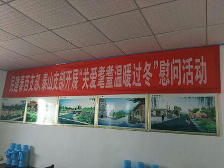 由民建市委副主委黃屹峰,秘書長戚鋒帶領兩支部會員代表10余人,走訪了村中80歲以上老人27位,贈送了價值7000余元的慰問品。山東省浙江商會常務副會長、泰安市浙江商會會長陶光忠參加慰問活動。