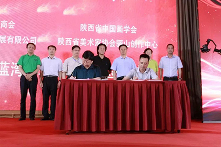 隨后,山東揚(yáng)夢(mèng)文化發(fā)展有限公司董事長(zhǎng)、威海浙江商會(huì)副會(huì)長(zhǎng)吳云樂先生,陜西美協(xié)主席王西京先生分別代表威海浙江商會(huì)、山東揚(yáng)夢(mèng)文化發(fā)展有限公司與陜西省中國(guó)畫學(xué)會(huì)、陜西省美術(shù)家協(xié)會(huì)驪山創(chuàng)作中心就《共建威海藍(lán)灣藝術(shù)創(chuàng)作基地》舉行了簽約儀式。