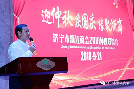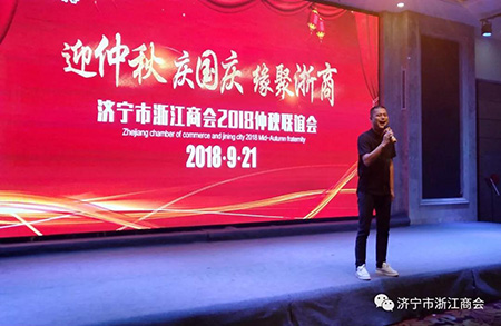 9月21日晚,濟寧市浙江商會在翠都國際酒店舉辦了以“迎中秋、慶國慶、緣聚浙商”為主題2018·中秋聯誼會活動。濟寧市工商聯主席李克學,副主席焦軍道,濟寧市民管局副局長李銀生,濟寧市投資促進局副局長代超等代表市工商聯、市民政局、市投資促進局等出席活動并致辭。濟寧市江蘇商會、濟寧市江西商會、濟寧四川商會、濟寧市安徽商會等兄弟商會及商會全體會員近200余人歡聚一堂,敘鄉情、話友誼,共迎中秋、國慶佳節的到來。