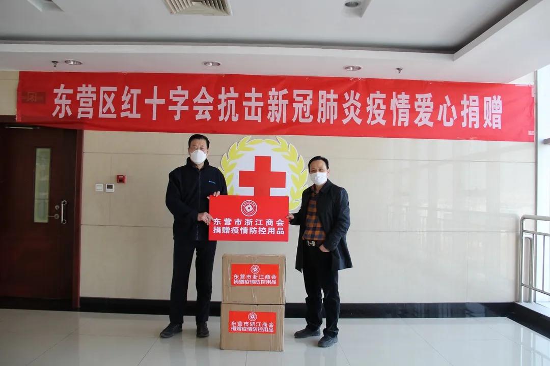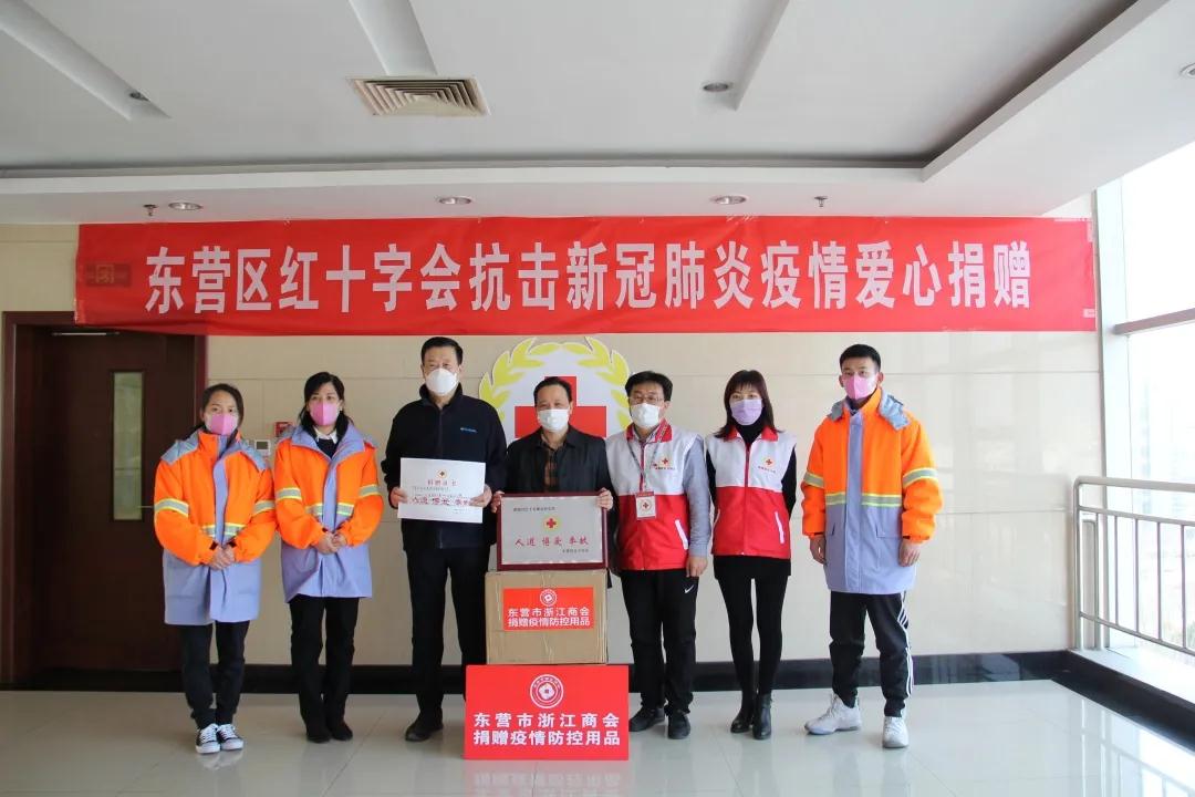 東營市浙江商會副會長高達飛,東營市浙江商會黨支部書記隋順興參與了捐贈儀式。東營區紅十字會張惠副會長參與捐贈活動,并帶領紅十字會工作人員監督檢查了物品交接的全過程,確認物資全部質量合格,保質期均在一年以上。東營區紅十字會現場向商會頒發了捐贈證書和獎牌。