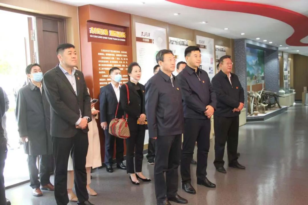 張鯤一行首先來到雙山街道三澗溪村,先后參觀黨群服務中心、農事匯和鄉村振興館,重溫習近平總書記來三澗溪村考察時的情景,了解該村以黨建為引領,通過抓班子帶隊伍、抓產業謀發展、抓環境優生態、抓人才強服務、抓文化促和諧,實現村莊由亂到治、富民強村的發展歷程。張鯤對三澗溪村黨建引領鄉村振興的經驗做法給予高度評價,他表示,要緊緊抓住黨建引領這個“牛鼻子”,進一步夯實商會黨組織基礎,發揮好思想政治引領作用,始終把準正確的發展方向,不斷增強企業的向心力和凝聚力,更好地服務經濟社會發展。隨后,參加活動的黨員同志重溫入黨誓詞。
