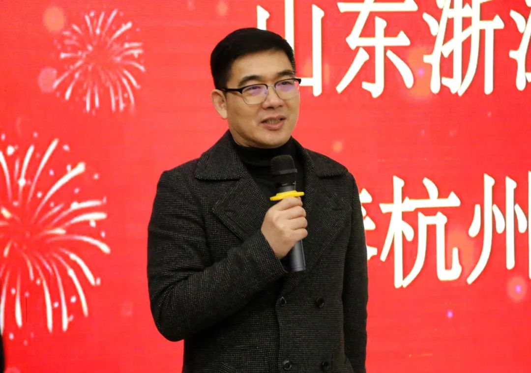 山東省政協常委、山東省浙江商會監事會主席葉樂明致辭,感謝章會長召集大家春節交流,邀請來杭學習考察,我們也要走在前、開新局。并表示現代聯合集團打造運營的山海共富農優產品展銷窗口是助力浙江山區