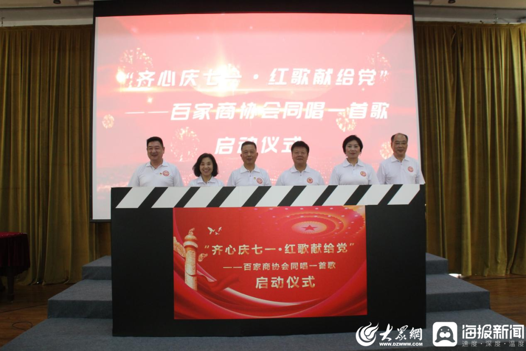 授旗儀式后,為了迎接即將到來的“七一”建黨節,百家商協會“齊心慶七一·紅歌獻給黨”活動同時啟動,旨在引導商協會黨員干部進一步堅定信心與決心。聯席會各發起單位:山東省湖北商會黨支部書記、會長王傳高、山東省家電行業協會聯合黨支部書記、山東省智能家居協會會長曹海奎、山東省孕嬰童產業服務協會會長劉長燕、山東省女企業家商會黨支部書記賈莉萍、山東省浙江商會黨支部書記胡小軍、山東省民營企業家協會秘書長李吉祥共同上臺宣布活動啟動。