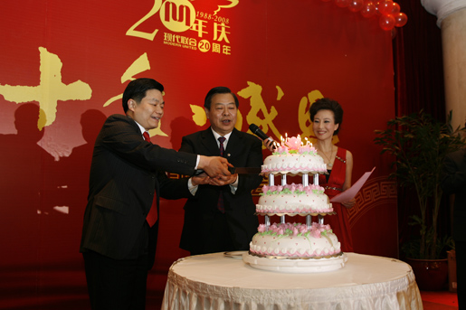 宴會開始后,章鵬飛董事長切開“現(xiàn)代”20歲生日蛋糕,與嘉賓們一起分享成功和喜悅。