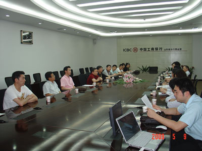 我會擬于2009年5月15日,聯合工商銀行山東省分行舉辦“工商銀行財富論壇——商會精英專場活動”。為將此次論壇組織舉辦的更加成功,5月9日上午,我會副會長兼秘書長葉蘄萩、副會長蔣加良、副秘書長張宗建及山東省福建、江蘇、溫州商會會長、秘書長與工商銀行相關部門在工行山東省分行營業部會議室進行了座談。