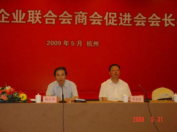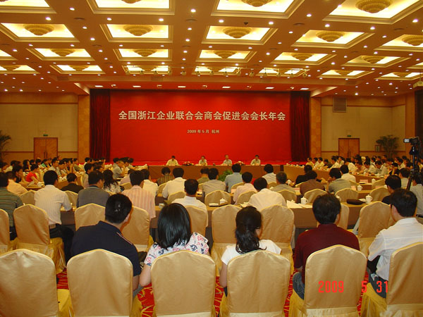 2009年5月30下午、31日上午,2009全國(guó)浙江企業(yè)聯(lián)合會(huì)商會(huì)促進(jìn)會(huì)會(huì)長(zhǎng)年會(huì)在杭州之江飯店召開。會(huì)長(zhǎng)章鵬飛、常務(wù)副會(huì)長(zhǎng)金位海、秘書長(zhǎng)葉蘄萩、副秘書長(zhǎng)張宗建參加會(huì)議。全國(guó)29個(gè)省外浙江商會(huì)會(huì)長(zhǎng)、秘書長(zhǎng)參加年會(huì)。浙江省副省長(zhǎng)茅臨生、省協(xié)作辦主任姚少平、省民政廳副廳長(zhǎng)梁星心、省司法廳副廳長(zhǎng)陳志忠、省協(xié)作辦副主任林駿等出席會(huì)長(zhǎng)年會(huì)。鄭憲宏副主任主持會(huì)議。