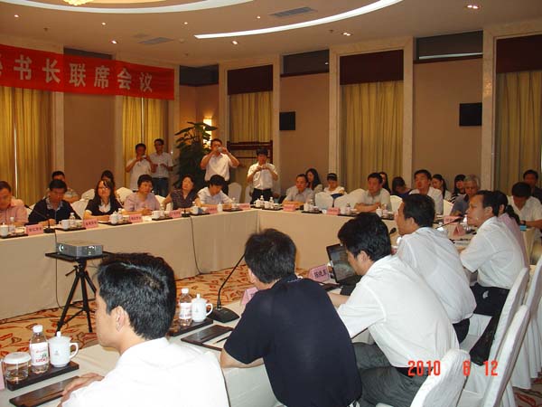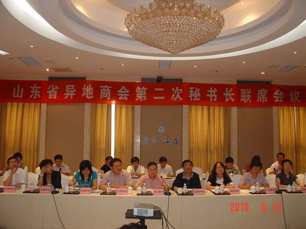 6月12日,山東省省級異地商會第二次秘書長聯席會在商河溫泉基地召開。我會副會長兼秘書長葉蘄萩、副會長陳桂宏、首席顧問顏景海,山東省福建、江蘇、江西、安徽、廣東、湖北商會秘書長和正在籌建的河南、川渝、僑商、山西等商會籌備負責人參會。商河縣人民政府副縣長韓英、縣招商局局長陳曉東、商河經濟開發區管委會、外經貿局、貿促會、縣城區產業園管委會等有關部門負責人出席會議。