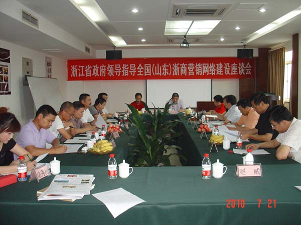 為貫徹落實(shí)浙江省政府7月2日召開的全國浙商營銷網(wǎng)絡(luò)建設(shè)工作會(huì)議精神,浙江省經(jīng)濟(jì)合作交流辦公室率永利副主任、吳永平處長7月21日至23日到山東指導(dǎo)、推進(jìn)全國浙商營銷網(wǎng)絡(luò)建設(shè)有關(guān)工作,具體指導(dǎo)我會(huì)拓展辦工作,與我會(huì)領(lǐng)導(dǎo)班子及營銷中心、市場(chǎng)經(jīng)銷戶座談,并實(shí)地考察部分浙江市場(chǎng)、營銷中心等。