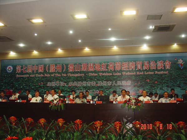 滕州市委書記王忠林在致辭中指出,舉辦第七屆中國(滕州)微山湖濕地紅荷節(jié),旨在突出“體驗(yàn)紅荷濕地,共建幸福滕州”這一主題,全力打造“墨子故里·江北水鄉(xiāng)”的城市品牌,宣傳推介滕州良好的投資創(chuàng)業(yè)環(huán)境,讓海內(nèi)外客商和各界朋友更加深刻地認(rèn)識(shí)滕州、了解滕州,來滕州投資創(chuàng)業(yè)、共謀發(fā)展。