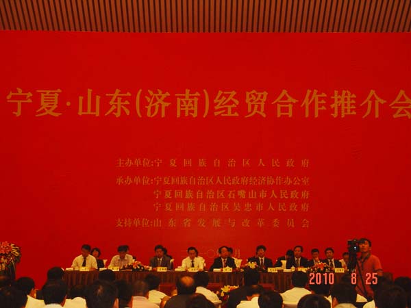 8月25日,寧夏•山東經貿合作推介會在濟南召開。寧夏回族自治區人民政府副主席李銳為團長的寧夏代表團來山東作經貿合作推介;山東省副省長李兆前,山東省發改委、經信委、民委、國資委等相關單位領導及山東省300余家大中型企業負責人參會。商會副會長蔣加良、吳昌碩、金龍及理事單位代表應邀參加。
