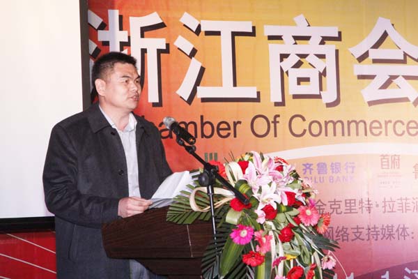 商會(huì)會(huì)長章鵬飛在致辭中,代表浙江商會(huì)并以個(gè)人的名義向長期以來關(guān)心和支持浙商的各級(jí)政府領(lǐng)導(dǎo)表示衷心的感謝,向在山東創(chuàng)業(yè)的42萬浙商以及社會(huì)各界朋友、媒體致以誠摯的問候;并轉(zhuǎn)達(dá)了商會(huì)名譽(yù)會(huì)長、山東省原省長韓寓群對浙商的關(guān)心和問候。章會(huì)長指出,2010年在國際金融危機(jī)的大背景下,特別是在中央貨幣政策由“寬松”向“穩(wěn)健”的轉(zhuǎn)變下,商會(huì)以科學(xué)發(fā)展觀為指導(dǎo),積極貫徹落實(shí)中央和山東“調(diào)結(jié)構(gòu)、轉(zhuǎn)方式、關(guān)注民生”的宏觀政策,采取了一系列行之有效的措施,帶領(lǐng)浙商克服困難,取得了很大的成就。2010年商會(huì)組織了數(shù)十次由各級(jí)政府主辦的招商引資及項(xiàng)目推介會(huì),先后協(xié)助并參與組織了數(shù)百次大型招商引資活動(dòng)。與各大銀行共同組織銀企對接會(huì),為廣大中小企業(yè)搭建投融資服務(wù)平臺(tái)。加強(qiáng)與省內(nèi)外兄弟商會(huì)的交流合作,共度難關(guān),共同應(yīng)對金融危機(jī)。據(jù)不完全統(tǒng)計(jì),目前浙商在魯累計(jì)簽訂投資項(xiàng)目1200多個(gè),投資總額達(dá)3500多億元,已經(jīng)成為山東經(jīng)濟(jì)發(fā)展的一支重要力量,得到了山東各級(jí)政府和人民的充分肯定。章會(huì)長還提到商會(huì)代表山東接下了“2011中國商幫峰會(huì)”的大旗,這將是2011年山東經(jīng)濟(jì)領(lǐng)域的一次盛會(huì),也是向全球商幫推介山東,助力山東經(jīng)濟(jì)發(fā)展的一次很好的機(jī)會(huì)。