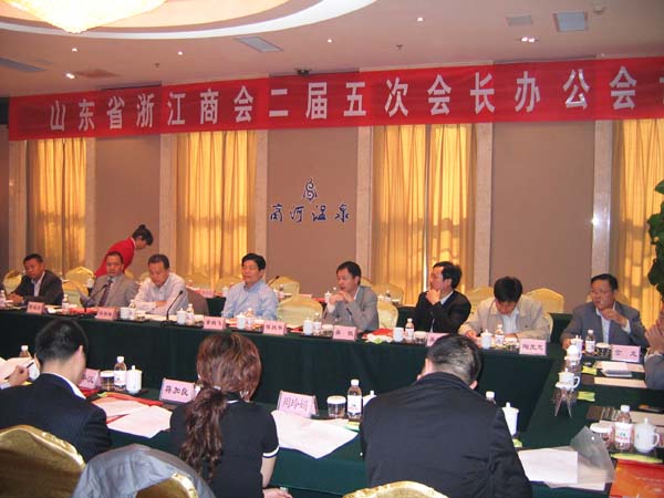 2011年4月24日,章鵬飛會(huì)長(zhǎng)在商河主持召開了山東省浙江商會(huì)二屆五次會(huì)長(zhǎng)辦公會(huì)議。常務(wù)副會(huì)長(zhǎng)杜利峰、陳躍華、陳桂宏、吳凱,副會(huì)長(zhǎng)蔣華漢、吳可夫、陳錫銘等30多位副會(huì)長(zhǎng)參加了會(huì)議。商會(huì)首席顧問顏景海,商會(huì)常務(wù)副秘書長(zhǎng)張宗建,副秘書長(zhǎng)楊易成、徐秀梅、余建權(quán)及商會(huì)駐會(huì)工作人員列席會(huì)議。