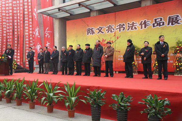 2012年1月7日上午,由山東省江蘇商會、山東省浙江商會主辦的商會高級顧問陳文亮書法作品展在山東省美術館開幕,章鵬飛會長出席并致辭。濟南軍區聯勤部原副政委、少將胡禮仁,濟南軍區原裝備部部長、少將朱文玉,濟南軍區聯勤部原副部長、少將何其祥,山東省人民政府副秘書長徐振基等軍區和政府領導,商會副會長和秘書長參加了開幕式,并觀摩了陳文亮顧問的經典創作。