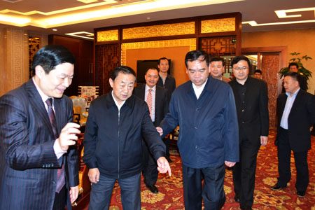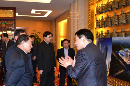 章鵬飛會長對韓寓群、王敏、楊魯豫等領導一直以來對商會的關心和支持表示衷心的感謝。章會長重點匯報了擬建山東浙商總部基地的規劃及有關情況,并展示了整體效果圖。韓寓群省長、王敏書記等領導高度贊揚了浙商多年來投資山東所做出的貢獻,以及浙商善抓機遇、勇于創新的浙商精神,并對商會的建設和發展提出要求,希望商會繼續團結帶領廣大浙商,為山東經濟社會發展、為魯浙兩省經濟合作交流做出更大貢獻。