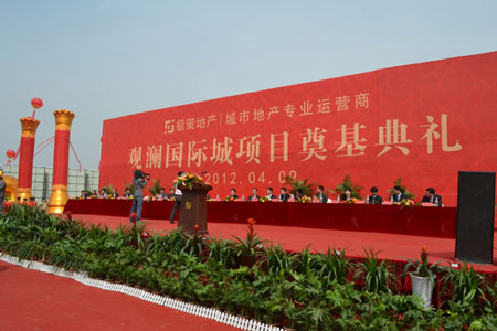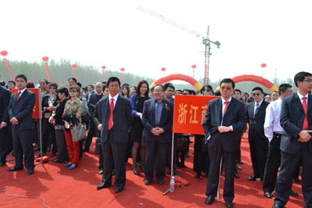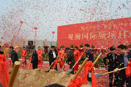 4月9日,由商會常務理事單位極策地產投資開發的觀瀾國際城項目開工奠基儀式在聊城莘縣風光秀麗的徒駭河畔隆重舉行。聊城市軍分區司令員李昌平,副市長任曉旺,莘縣縣長張國洲、副縣長于豪勝,浙江樂清市市長林培根出席了此次奠基活動。商會副秘書長楊易成及聊城分會、常務理事單位、理事單位代表前往祝賀,并參加了莘縣投資環境說明會。