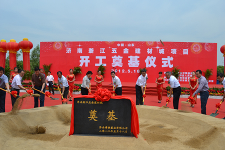 濟南浙江五金建材城項目總投資20億元,建筑面積約66萬平方米。項目建成后,將成為黃河以北最大的五金建材城。該項目總體功能定位是打造“一心二街四區(qū)五城”。“一心”指特色商業(yè)購物中心;“二街”分別指中央風(fēng)情大街、濱水休閑商業(yè)街;“四區(qū)”分別指總部辦公區(qū)、高檔星級酒店、倉儲物流配送區(qū)、高尚水景社區(qū);“五城”分別指精品陶瓷建材城、升降機械城、五金門窗城、裝飾材料城和農(nóng)機配件城。項目一期投資3億元,占地約500畝,主要建設(shè)五金機電建材市場和部分住宅。