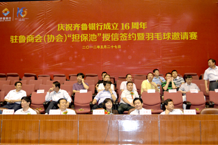 章鵬飛會長代表駐魯商會在授信儀式上致辭。章會長說,近50萬在魯浙商和各兄弟商會企業家在山東的投資興業,發展壯大,得到了各大銀行特別是齊魯銀行的金融支持。大家都知道齊魯銀行是山東省成立的首家城市商業銀行,是山東省首家、全國第四家實現與外資銀行戰略合作的城市商業銀行,也是山東省首家跨省經營的城市商業銀行。齊魯銀行的各項個人業務、公司業務等都有很多她自身的優勢,為濟南市、山東省企業發展提供了金融支持,為山東省經濟社會建設發揮了積極作用。近幾年,國家出臺了扶持中小企業發展的金融政策,但是融資難仍然是中小企業發展的重大問題,今天在此舉行駐魯商會(協會)“擔保池”授信簽約,表明商會與齊魯銀行的合作更加緊密,齊魯銀行將為我們廣大投資者提供更加有針對性、更加適合的融資貸款等金融業務。有了“擔保池”授信,投資企業在今后的經營中將會得到更好的發展,為山東特別是濟南的經濟建設做出更大的貢獻。