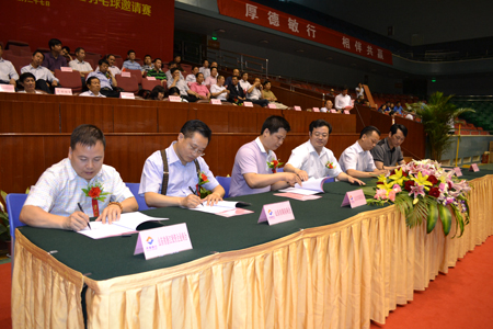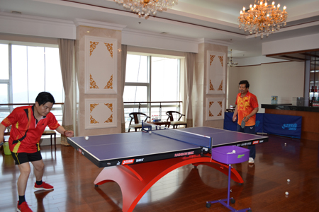 簽約儀式后,我會等駐魯商會、齊魯銀行進行了激烈的羽毛球對抗賽。章鵬飛會長和王曉春董事長為此次比賽開球。章鵬飛會長與齊魯銀行黃家棟行長的乒乓球對戰,精彩不斷。我會常務副會長倪士鎮作為領隊率浙江商會比賽團隊參賽,浙江商會整齊統一的紅色運動裝,亮麗而炫動。副會長周建明,副會長單位代表史曉東、李曉剛、楊峰、蘆晶、王志剛等參賽選手積極迎戰,表現出色,拉拉隊員也充滿熱情,為選手加油吶喊。在眾多專業隊的角逐中,我會選手雖未最終進入團體前三甲,但在比賽期間,大家相互鼓勵、默契配合,充分體現了賽場上的浙商抱團合作精神。