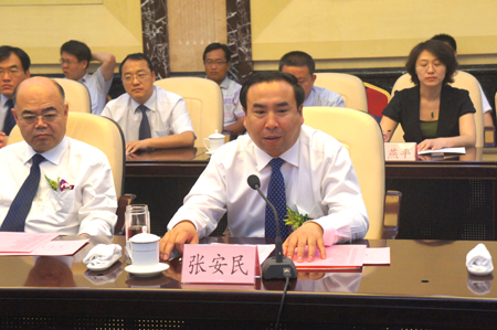 張磊市長主持簽約儀式。張安民書記在致辭中簡要介紹了禹城基本情況及經濟社會發展情況,并代表禹城市委、市政府對項目簽約表示祝賀。
