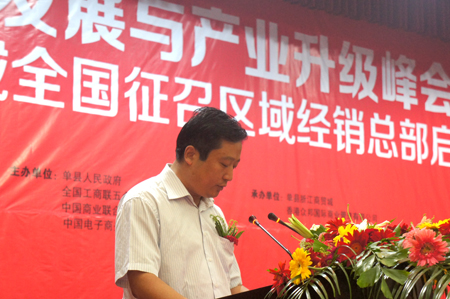 峰會由單縣人民政府副縣長李磊主持。縣委常委、紀委書記宋茂民,縣委常委、常務副縣長黃福常,國家建設部政策研究中心主任、中國城鄉建設經濟研究所所長陳淮,全國工商聯五金機電商會秘書長顏葉,中國商業聯合會,中國電子商務協會等各行業協會及中國德力西集團、中國紅星美凱龍家居集團、中國億聯商業地產集團、永康中國科技五金城等眾多知名企業、總部經銷商、品牌商家近800人參加了峰會。我會副秘書長楊易成在峰會上,對商貿物流業發展和市場選址進行深入剖析。