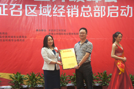 中國商品交易市場專業委員會、全國工商聯五金機電商會、中國電子商務協會現場分別給浙江商貿城各類市場政策扶持并授牌。