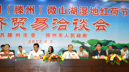 8日上午,第九屆中國(滕州)微山湖濕地紅荷節在滕州龍泉文化廣場隆重開幕。中央委員、中央軍委委員、中國人民解放軍總政治部主任李繼耐等領導發來賀信或賀電,對紅荷節的舉辦表示祝賀,對滕州市委、市政府實施“文化搭臺、經貿唱戲”的做法給予充分肯定。