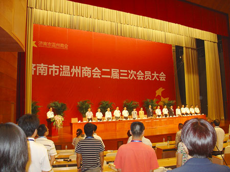 8月26日,濟南市溫州商會成立五周年暨濟南·溫州文化周活動在山東大廈舉行,溫州市委常委、宣傳部部長胡劍謹,溫州市政協副主席、市工商聯主席王振滔,濟南市委常委、宣傳部部長譚延偉,濟南市政協副主席李好臣出席活動。我會副會長兼秘書長葉蘄萩,副會長鄭朝國、陳重陽等參加活動。