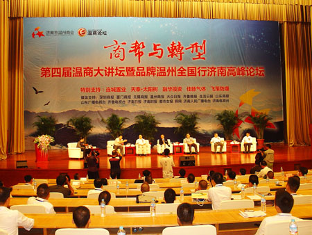 以“商幫與轉型”為主題的品牌溫州全國行濟南高峰論壇上,美國商務部助理部長黃建南,深圳商報、廈門商報、無錫商報、溫州商報和山東商報的總編輯,共同探討轉型期的商幫與商幫的轉型、促進商幫之間的合作。“溫情滿天下”大型文藝晚會現場還舉辦了王振滔慈善基金會愛心接力計劃·濟南站助學儀式,同時,世界溫州人微笑聯盟慈善公益組織也舉行了慈善愛心行動,將免費醫治濟南貧困家庭唇腭裂患兒。