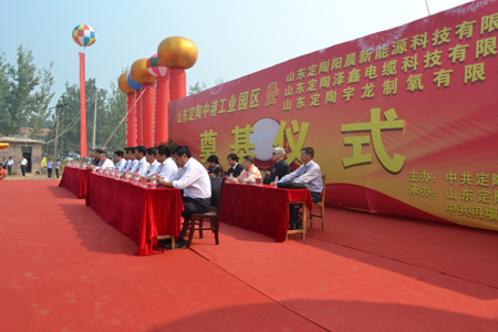 9月16日,定陶縣冉堌鎮(zhèn)隆重舉行了浙商投資的定陶中港工業(yè)園暨陽晨新能源、澤鑫電纜、宇龍制氧項目奠基儀式。儀式由縣委副書記、縣紀(jì)委書記劉守文主持,市委常委、縣委書記張毓華宣布奠基儀式開始。中港工業(yè)園投資管理有限公司董事長邵家霖、企業(yè)代表等分別致辭。市縣鄉(xiāng)鎮(zhèn)各級領(lǐng)導(dǎo)以及嘉賓200余人參加奠基儀式,我會副會長兼秘書長葉蘄萩應(yīng)邀參加。
