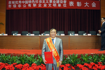 10月12日,第四屆泉城優(yōu)秀中國(guó)特色社會(huì)主義事業(yè)建設(shè)者暨市級(jí)非公有制企業(yè)文明單位表彰大會(huì)在濟(jì)南召開。大會(huì)對(duì)近年來濟(jì)南市非公有制企業(yè)中為“維護(hù)省城穩(wěn)定,發(fā)展省會(huì)經(jīng)濟(jì),建設(shè)美麗泉城”作出的積極貢獻(xiàn)、在全市改革開放和現(xiàn)代化建設(shè)事業(yè)中作出突出貢獻(xiàn)的非公有制經(jīng)濟(jì)人士和去年的市級(jí)非公有制企業(yè)文明單位進(jìn)行表彰。濟(jì)南市委常委、統(tǒng)戰(zhàn)部部長(zhǎng)慕建民,市委統(tǒng)戰(zhàn)部副部長(zhǎng)、市工商聯(lián)黨組書記李光明,市工商聯(lián)主席唐一林等領(lǐng)導(dǎo)出席并講話。會(huì)議授予我會(huì)副會(huì)長(zhǎng)、山東欣宏藥業(yè)有限公司董事長(zhǎng)周來杰等22名同志“泉城優(yōu)秀中國(guó)特色社會(huì)主義事業(yè)建設(shè)者”榮譽(yù)稱號(hào);授予6家非公有制企業(yè)市級(jí)文明單位榮譽(yù)稱號(hào)。