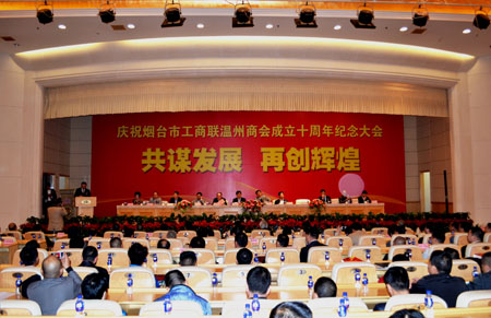 10月29日,煙臺市工商聯溫州商會成立十周年慶典大會在煙臺東山賓館隆重舉行,煙臺市委常委、統戰部長程德智,市人大常委會副主任于旭華等領導及在魯異地浙江籍商會會長、秘書長、各界嘉賓參加會議。我會常務副會長陳桂宏、副會長兼秘書長葉蘄萩、商會首席顧問顏景海等前往參加。