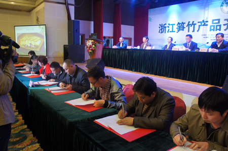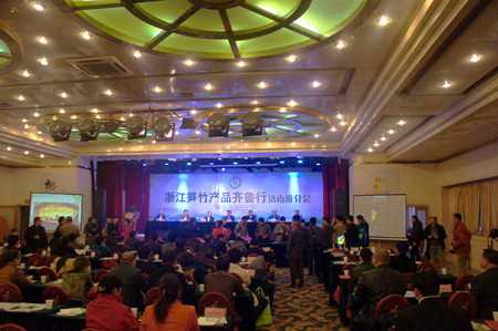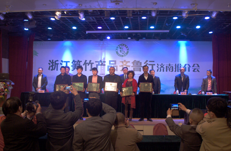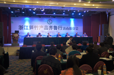 浙江省林業廳廳長樓國華在介紹中說,“世界竹子看中國、中國竹子看浙江”。浙江現有竹林栽培面積1250多萬畝,竹業總產值358億元,占全國的三分之一,全省竹類產品出口5億多美元。浙江省政府把發展竹產業列為“浙江十大農業主導產業”之一而加以重點培育和扶持,竹林栽培面積不斷擴大、竹業經濟效益不斷提高。期望通過推介活動讓濟南的城鄉居民更加了解浙江的筍竹產品,讓華北的父老鄉親共享健康低碳的筍竹產品,也期待著在延續數千年竹子栽培使用歷史和燦爛竹文化的文明古國里,伴隨著低碳經濟的浪潮,讓竹消費熱起來,使其成為世界竹產業強國和竹消費大國。
